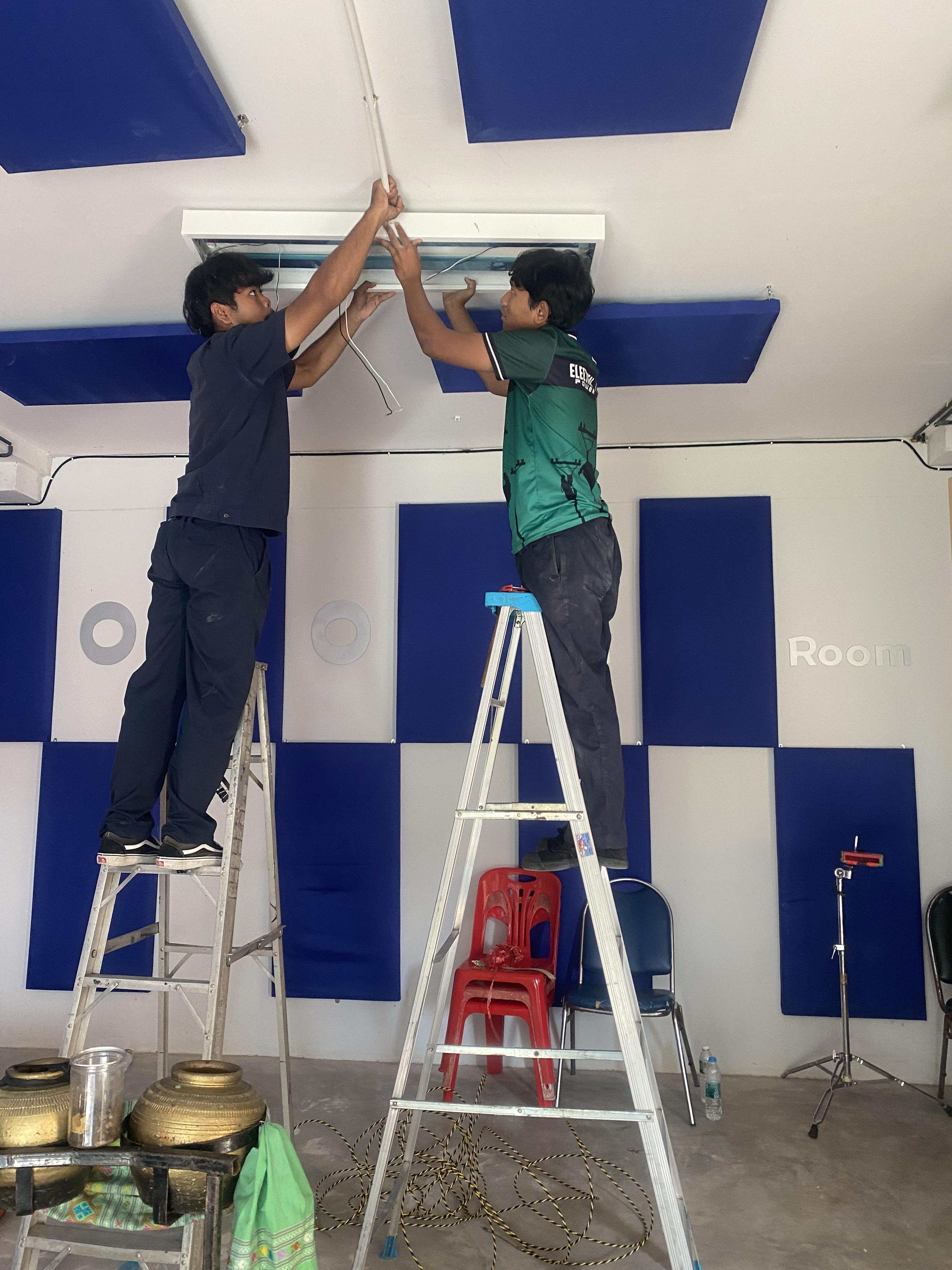 เดินระบบแสงสว่างห้องซ่อมดนตรี ราชภัฏมหาสารคาม