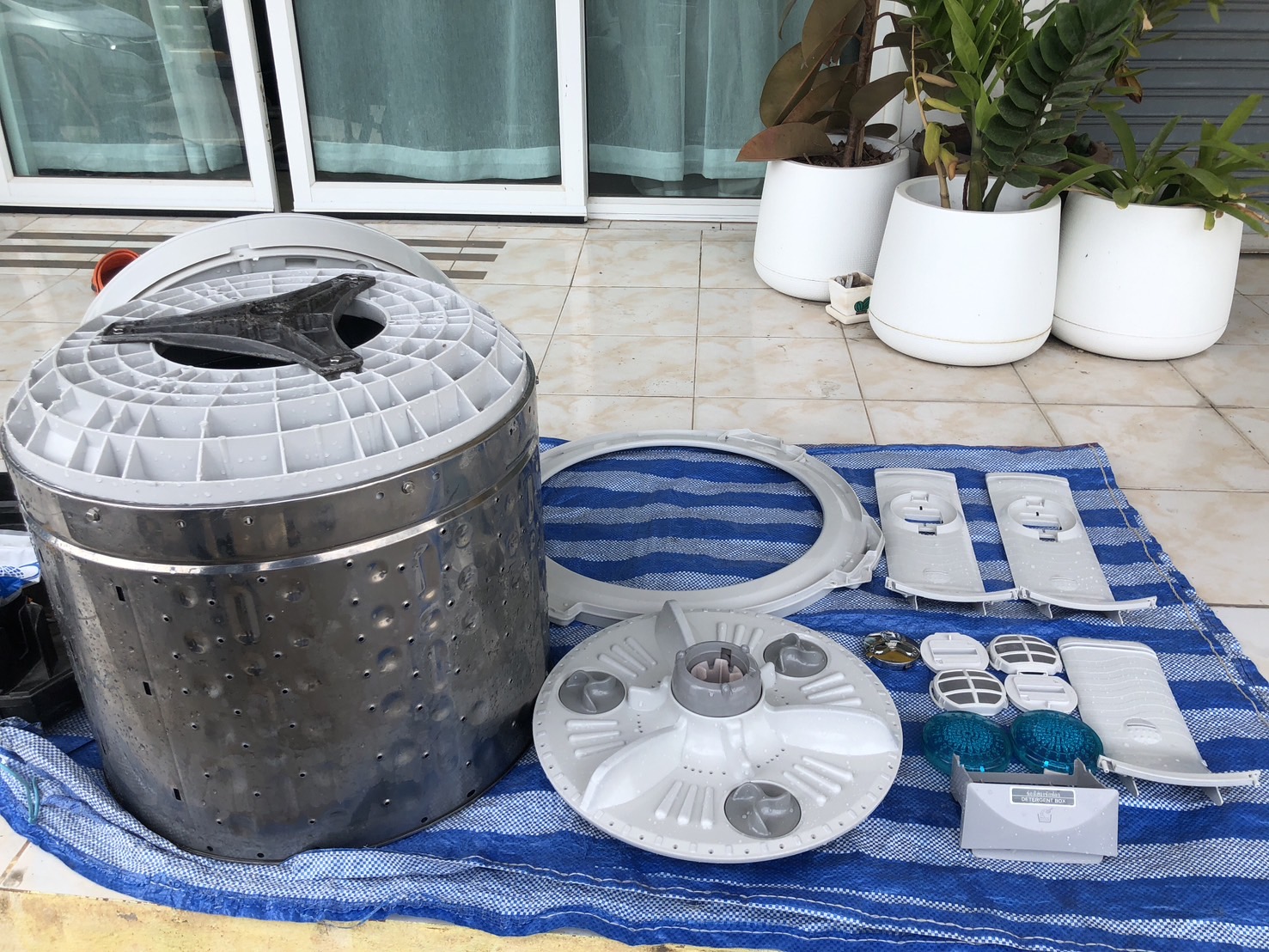 ดูจากรูปภาพก็คงจะเห็นแล้วว่าการทำความสะอาดถังซักผ้า ล้างเครื่องซักผ้า มีวิธีเดียวที่สะอาดที่สุดก็คือการถอดออกมาล้าง